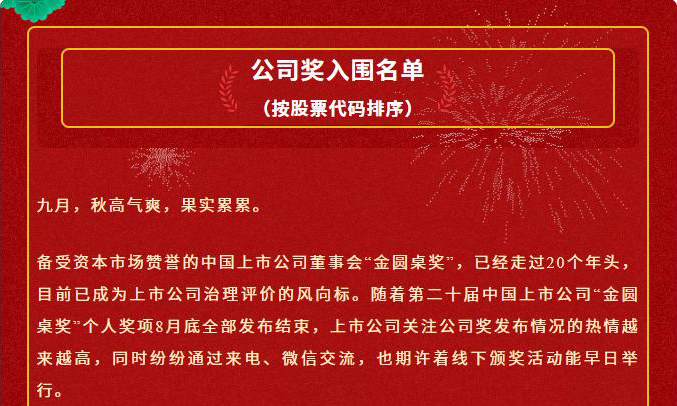 鑫鉑股份入圍“金圓桌獎”公司獎,彰顯卓越治理能力