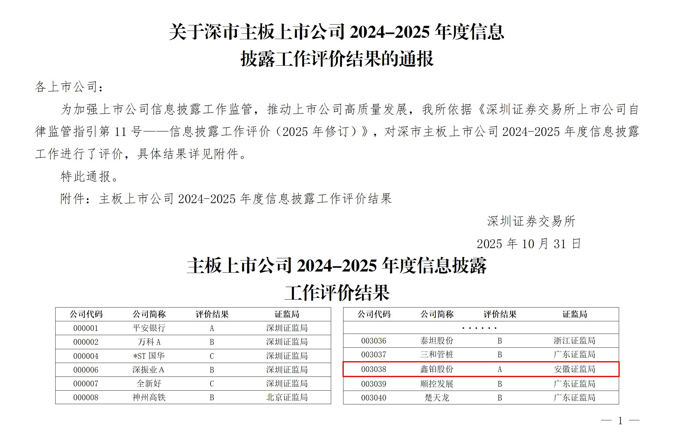 三載連A,誠信鑄金——鑫鉑股份再獲信息披露最高評價